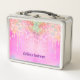 Make every lunch break magical with this cute rainbow unicorn glitter drips pink custom metal lunch box. Featuring a playful pastel unicorn, colorful rainbow accents, and sparkling faux glitter drips, this design brings joy and whimsy to any school day, work break, or outing. The soft pink background adds sweetness, while the customizable text makes it uniquely yours. Fun, bright, and full of charm, this sturdy metal lunch box is perfect for anyone who loves a touch of enchantment.
