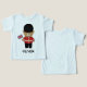 Esta pequeña camiseta para bebés presenta un pequeño oso de peluche sonriente vestido de guardia real con un alto gorra negro y una chaqueta roja, con una pequeña bandera británica.