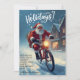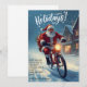 Difunde alegría festiva con esta encantadora tarjeta de Navidad que presenta a Santa Claus montando en bicicleta a través de un pueblo nevado. Diseñada en un estilo de acuarela acogedor con deseos de "Felices Fiestas", este saludo de Navidad caprichoso es perfecto para familiares, amigos, compañeros de trabajo o vecinos. Una tarjeta de Navidad encantadora y única para compartir el calor y la alegría de la temporada. Fácilmente personalizable para tu mensaje personal.