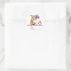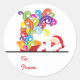 Cute Santa Claus Y Regalo Box Christmas Sticker Gift Tag. Salen remolinos coloridos de la caja.