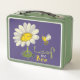 Cute Simple Illustration depicting a Daisy Flower and a Hovering Bumblebee with Text Leaf me Bee