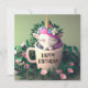 Un lindo unicornio dentro de una taza rodeada de vegetación.