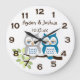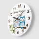 Cute Whimsical Boy Owl Twins Wall Clock - uno en gris, uno en azul - decoración perfecta para la habitación de tu gemelo - personaliza con tu propio nombre y fecha. Si quieres este diseño en otro producto, o en una combinación de colores diferente, por favor contacta conmigo a través de mi tienda. Si necesita mover el texto o cambiar el tamaño, la fuente o el color del texto, haga clic en IT Personalizar.