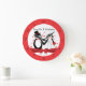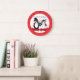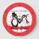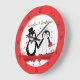 Un lindo reloj de pared de boda pingüino con 2 pingüinos, el pingüino de novia vestido con un vestido boda blanco con un velo de tiara cardíaca que lleva un ramo de rosa roja y el pingüino de novio con una corbata roja y sombrero de punta con una banda roja rodeada de corazones rojos flotantes coronados con un salteado y un arco. Personalizar este lindo reloj de pared para un gran regalo para tu pareja favorita o incluso para tus amantes favoritos de los pingüinos. Este diseño también está disponible como invitaciones de boda y otras ideas de regalo.