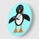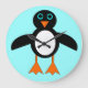 Este reloj impresionante presenta un personaje pingüino lindo con una panza blanca, ojos azules grandes con pupilas negras y pies naranjas y pico adorables. Este pequeño y encantador ave de invierno hará las delicias de niños y adultos. El pingüino se sienta en un fondo azul pálido y helado para recordarle su frágil casa ártica.