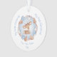 Ornamento de Navidad con un ciervo cutáneo en Navidades de pan de jengibre coronaba en azul y beige. Personalizar fácilmente el texto - Kate Eden Art