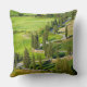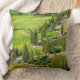La almohada de tiro de una bobina del zigzag, árbol de ciprés alineó el camino a través de los campos verdes en Monticchiello, Toscana en Italia.