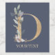 Letra D monograma floral. Letra D en textura marrón dorada acentuada con hojas de compuestos de acuarela verde, flores y gotitas de polvo de oro. Personalizado con el nombre en el tipo de letra coincidente.