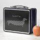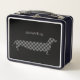 Perro de salchicha elegante de la tela escocesa en la fiambrera metalizado negra personalizada.