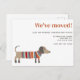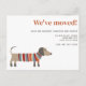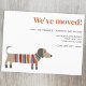Con un divertido y peculiar perro Dachshund, perfecto para los amantes del perro que quieren compartir sus emocionantes noticias con un toque de humor. La parte delantera cuenta con un caprichoso ilustracion de un Dachshund vestido con ropa de cama a rayas brillante y juguetón. Ya sea que te mudes a través de la ciudad o a través del país, esta invitación es una excelente manera de mantener a tus amigos y familia al tanto de tu nueva dirección. ¡Prepárate para sacudir tu cola con emoción! Arte original de Nic Squirrell.