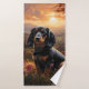 Añada un toque de juego a su cuarto de baño con esta encantadora toalla de baño de Dachshund. Con un delicioso Dachshund sentado en una serena escena de puesta de sol, rodeado de florecientes flores silvestres y colinas onduladas, esta toalla combina funcionalidad con un diseño singular y caprichoso. La toalla de baño Dachshund, perfecta para añadir estilo a la decoración del cuarto de baño, es a la vez divertida y práctica para el uso diario.