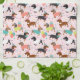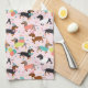 Perros adorables fiestas de cumpleaños dachshund con abrigos negros, tostados y de manzana vestidos con adorables trajes de cumpleaños con globos, tortas y patrones de confeti.
