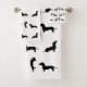 Este kit de toallas de baño Dachshund en blanco y negro es perfecto para cualquier baño. Este diseño se completa con adorables gráficos en negro de Dachshund, junto con un fondo blanco. ¡Disfruten de este lindo diseño!