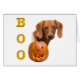 ¡Tu raza AKC dice Feliz Halloween con un BOO! Trate a alguien con un regalo de Halloween Dachshund con una camiseta, taza, tarjeta, llavero, mousepad, y más.