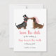Invite a sus amigos y familiares a que guarden la fecha de su día especial con esta tarjeta linda que incluye a un niño y chica dachshund con sus mejores atuendos bodas 💗 Añada una foto de la feliz pareja al dorso para un agradable toque personal.
