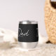 Celebrate the year he officially became a Dad with this stylish and useful black insulated wine tumbler. Featuring a modern, clean design, the customizable word "Dad" is boldly displayed with "Est." in modern script followed by the customizable year. It's the perfect gift for Father's Day, a new dad, a pregnancy announcement, or any day he wants to show off his favorite title. Created by Simply Farmhouse Press.