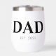 Celebrate fatherhood with this simple and modern “Dad Est. [Year]” tumbler. Featuring black and white typography, this minimalist design is perfect for new dads or seasoned fathers alike. Customize the year to mark when he first became a dad — a sweet, personal touch that makes this tumbler extra meaningful. Ideal for Father’s Day, baby showers, pregnancy announcements, or casual everyday use. This custom tumbler is a thoughtful way to honor the year that changed everything.