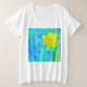 Esta camiseta exhibe un collage digital compuesto por varias capas de pinturas, texturas y escaneos. El soleado daffodil "sopla" de fondo azul.