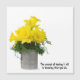 Dafódilos amarillos en taza de lata vintage con cita inspiradora.