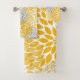 Dahlia Bouquet en color mostaza amarillo y gris le dará un toque de color fresco a su cuarto de baño. Consulte la colección para ver las coordenadas.
