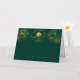 Elegante tarjeta de agradecimiento floral con un borde superior de flores de Relieve metalizado dorado delgadas con un fondo verde. "Gracias" se muestra en un guión moderno de Relieve metalizado dorado con el nombre que se muestra a continuación. En el interior de la tarjeta de agradecimiento de Relieve metalizado dorado aparece tu mensaje con letras negras. La floral tarjeta de agradecimiento es perfecta para bodas, duchas de novias, duchas para bebés, cumpleaños y más.