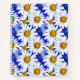 Diario en un patrón acuarela de margaritas blancas con centros amarillos dorados, sobre un fondo en tonos de azul denim
