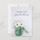 Dé las gracias a sus huéspedes después de una elegante fiesta de compromiso, una ducha de novia o una recepción matrimonial con los bonitos White Daisies in Blue Jar Boda Flat Gracias. Estas notas de agradecimiento personalizados y elegantes tienen una pintoresca fotografía floral de un rústico jarrón azul lleno de flores de margarita blancas con satén blanco. Perfecto para una celebración de fiesta en verano.