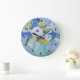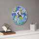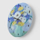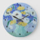 Este reloj de pared cuenta con una pintura de Brendan Loughlin, un artista de Guilford, Connecticut. Hermosas margaritas amarillas y blancas con iris azules.