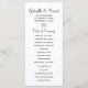Dé a sus invitados bodas el orden de su ceremonia matrimonial con el programa Blanda de margarita blanca sobre la boda gris. Personalizar con los nombres personales de la novia y el novio y detalles específicos de la ceremonia de boda y cronología. Este elegante programa de bodas botánicas personalizados presenta una fotografía floral de exposición múltiple de una flor de margarita blanca con un centro amarillo y fondo gris y complementará cualquier tema boda de margarita elegante.
