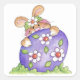 Un conejito chica detrás de un huevo de Pascua cubierto de margarita.