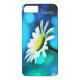 Una margarita contra un brillante fondo de azules y verdes en este funda