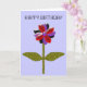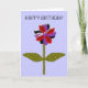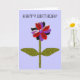 Esta hermosa tarjeta de saludo floral presenta una imagen digital de una margarita con un tallo verde con dos hojas verdes sobre ella y pétalos de color púrpura, rojo y negro con un centro púrpura. Los pétalos parecen hechos de plástico brillante que ha captado la luz y causado un efecto iridiscente. El fondo es de un color azul calmante. El texto en la parte delantera dice feliz cumpleaños pero es personalizable, así que puedes adaptarlo para otras ocasiones especiales también. El interior de la tarjeta se ha dejado en blanco para que puedas añadir tu propio saludo especial. Para ello, simplemente haga clic en el botón "personalizar". Aquí podrá añadir su texto utilizando una gama de tipos de letra y colores. También puede cambiar el color de fondo de la tarjeta.