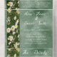 Este diseño floral combina el fondo de las acuarelas verdes con la imagen de las margaritas (que yo personalmente tomé) y es perfecto para los bodas de estilo moderno. Los textos son para un boda católico, pero pueden ser fácilmente personalizados y personalizados a su tipo de ceremonia. En una sola invitación, los detalles se incluyen como una tarjeta de fondo desgarradora, práctica y elegante. Si te gusta esta temática floral, por favor visita la otra papelería de este mismo estilo.