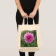 Una dalia grande, preciosa de la lavanda honra el frente de la esta bolsa de asas, proporcionando a la compañía alegre a su materia.