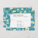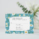 Papel blanco rizado sobre una margarita blanca y diseño turquesa para RSVP de boda. Todo el texto es editable.
