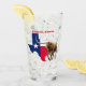 Un cristal de una pinta que muestra audazmente el contorno del estado de Texas y los colores de la bandera junto con un morrón. Un recuerdo "único" de una visita a Texas.