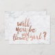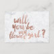 Una tipografía de lettering a mano con pincel moderna, original y chic en hoja de oro rosa falso será mi tarjeta de dama de flores en un fondo de mármol blanco elegante y simple