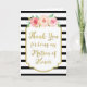 Tarjeta de agradecimiento de dama de honor en clásico patrón de rayas negras y blancas con detalles dorados y flores rústicas de acuarela vintage rosa y melocotón, la forma perfecta de mostrar su aprecio a su grupo nupcial. Disponible en invitaciones a juego y una amplia selección de otros productos de boda.