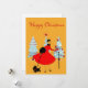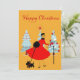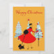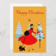 Navidades como se veía en los años 50 con esta obra de arte retro de una mujer vestida con un vestido de falda completa y rojo. "Navidades felices" Texto de saludo.