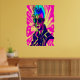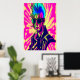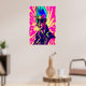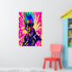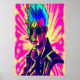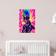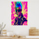 Retrato de una mujer ciberpunk de punk de pelo azul sobre un fondo de color humorístico. Este es un arte generado por IA.