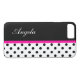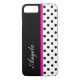 fundas de smartphones con Personalizado monogramo con moda con motivos de puntos de polka en blanco y negro y banda de moda rosa que se puede personalizar, y el espacio de colocación de nombres que se puede crear por usted mismo, reemplazando el nombre de la plantilla por el suyo o agregando las iniciales de su monograma. Te permite llevar tu celular en tu propio estilo personal.