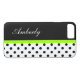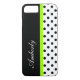 fundas de smartphones con Personalizado monogramo con moda, con un patrón de puntos de polka blanco y negro y una banda de moda verde brillante que se puede personalizar, junto con el espacio de colocación de nombres que se puede crear por sí mismo, reemplazando el nombre de la plantilla por sus propias iniciales de monograma. Te permite llevar tu celular con estilo.