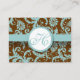 Monograma nuevo Tamaños elegantes Aqua Blue Damask en la invitación a la boda marrón-