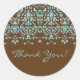 Nuestro elegante damasco azul turquesa y marrón rosado gracias pegatinas son el toque final perfecto para usted notas de agradecimiento o favores de ducha de novia. Artículos coincidentes disponibles en nuestra tienda @ www.celebrateitinvites.com. Este artículo está disponible en una variedad de combinaciones de colores.