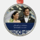 Ornamento adaptable del boda de la foto en azules marinos oscuros elegantes y modernos y crema del modelo floral clásico blanco del damasco. Perfeccione como recuerdo del navidad para recordar su día especial o para celebrar su primer navidad o como favores que se casan personalizados.