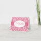 Tarjeta de agradecimiento boda en un tono bonito de rosa con un patrón clásico, damasco en blanco. La parte delantera tiene la frase "Gracias" en dos tonos rosados rosados. El interior se ha dejado en blanco para su mensaje personal. Se hizo para coordinar con nuestra Colección de Bodas de Damasco Rosado disponible en nuestra tienda.