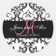 Damasco en blanco y negro de tinta Guardar los Pegatinas de fecha con Monograma y Nombres de novia y de Boda y fecha de . Personalizar con sus nombres, monograma y fecha. Elke Clarke©