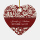Ornamento adaptable del boda de la foto en rojo y poner crema elegantes y modernos del modelo floral clásico blanco del damasco. Perfeccione como recuerdo del navidad para recordar su día especial o para celebrar su primer navidad o como favores que se casan personalizados.