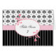 Una tarjeta de moda del número de la tabla para una recepción nupcial con un modelo blanco y negro elegante del damasco en las telas a rayas superiores y descaradas en la parte inferior, dividida por un marco floral rosado femenino. Personalice añadiendo el número de la tabla.