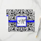 Damasco de flores negras con tarjeta monograma de la tarjeta Royal Blue Trim RSVP RSVP